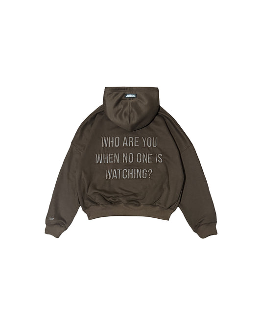 BOXY CROPPED EMBOSSED PRINT HOODIE - CHOCO BROWN