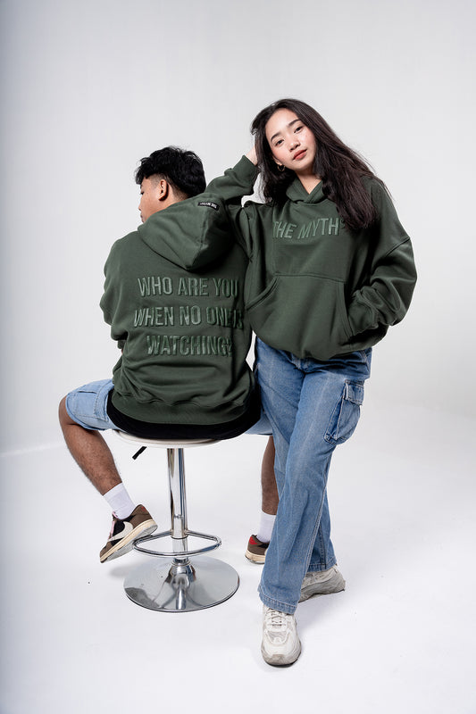BOXY CROPPED EMBOSSED PRINT HOODIE - MOSS GREEN