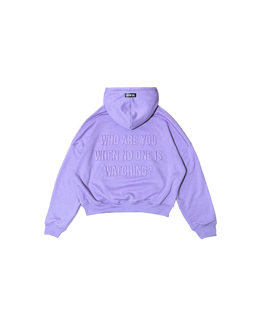 BOXY CROPPED EMBOSSED PRINT HOODIE - LILAC